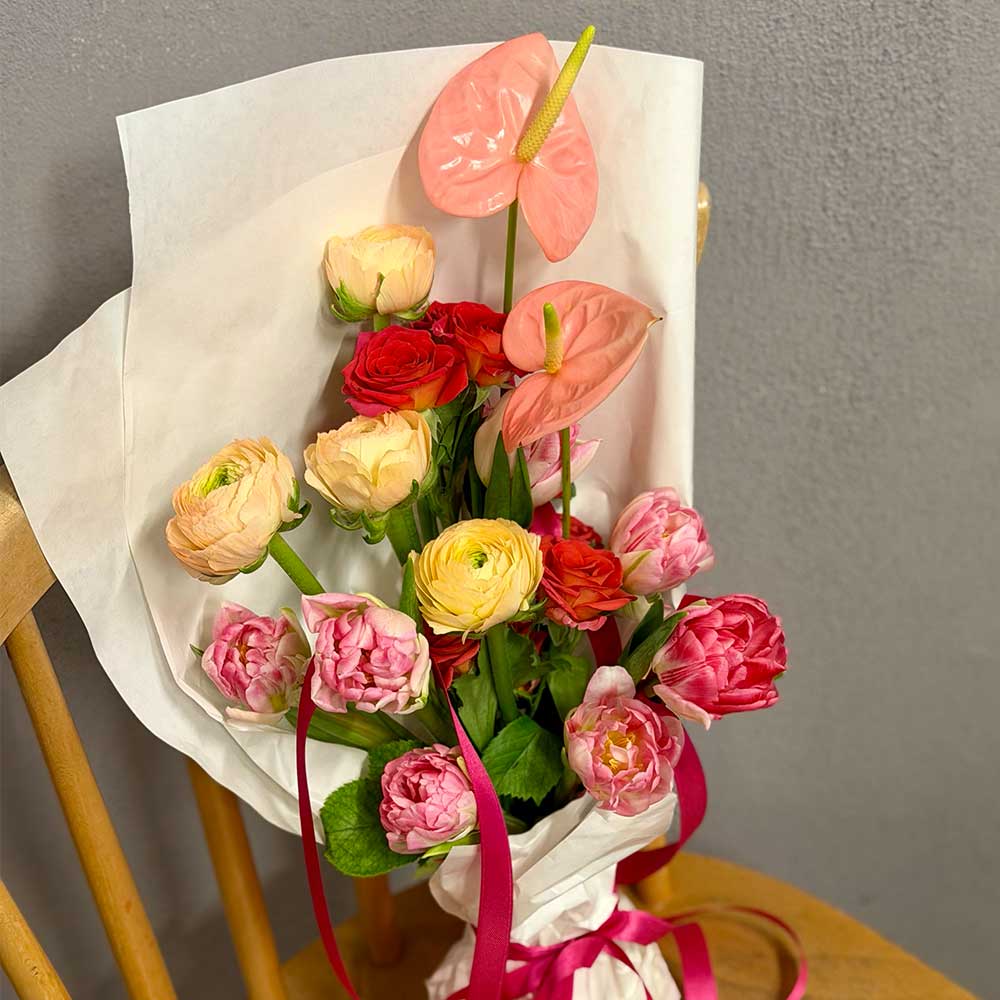 Met Galentine’s day (12 februari 2026) vieren we vrouwelijke vriendschappen. Verras jouw beste vriendin(nen) met een lief Galentine’s day boeket, gevuld met o.a. ranonkels, tulpen en anthuriums. Zo cute! Bestel uiterlijk 8 februari.